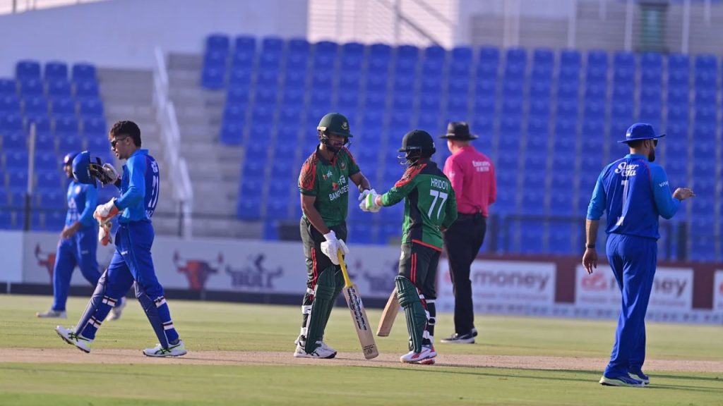 টপ অর্ডার ব্যাটারদের ব্যর্থতার দিনে দারুণ জুটি গড়েন মেহেদি হাসান মিরাজ ও তাওহিদ হৃদয়। দুজনে মিলে চতুর্থ উইকেটে যোগ করেন ১০১ রান। তাদের ব্যাটে ভর করে শুরুর ধাক্কা সামলে ঘুরে দাঁড়িয়েছে দল। তবে লোয়ার মিডল অর্ডার ব্যাটাররা উইকেটে এসে দাঁড়াতেই পারেননি। তাতে কোনোরকমে দুইশ ছুঁয়ে অলআউট হয় বাংলাদেশ। আবুধাবিতে টস জিতে আগে ব্যাট করতে নেমে […]